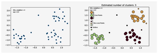 - Ester, M.; Kriegel, H.P.; Sander, J.; Xu, X. A density-based algorithm for discovering clusters in large spatial databases with noise. In Proceedings of the 2nd international conference on knowledge discovery and data mining (KDD’96), Portland, OR, USA, 2–4 August 1996; pp. 226–231. [Google Scholar]