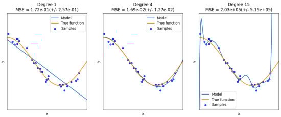 A more complex linear regression variant is polynomial regression. It can be represented as shown in Equation (8). However, it is observed that with a higher degree of polynomial equation, the model tends to overfit. To combat the overfitting problem, lasso and ridge regression techniques are used.