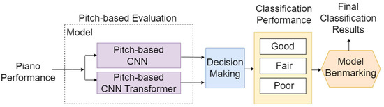 Here, Pitch-based CNN and Pitch-based CNN Transformers are the components for evaluating a piano performance. Figure 9 shows a block diagram of the pitch-based evaluation System.