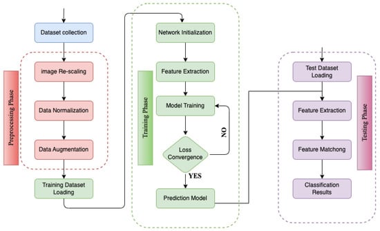 The data pre-processing stage comprises three steps: image rescaling, normalization, and data augmentation.