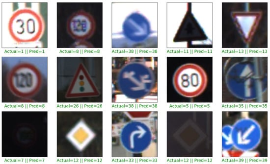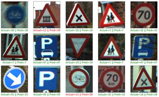 The datasets used in this study (GTSRB and BelgiumTS) include images with aspect ratios ranging from 15 × 15 to 250 × 250 pixels and 11 × 10 to 562 × 438 pixels, respectively. In order to be compatible with neural networks, it is necessary to have fixed image sizes. Furthermore, it is important to mention that reducing the image size to a lower pixel ratio, such as 80 × 80 or 50 × 50, would reduce the model’s complexity. However, this may have negatively affected the model’s ability to represent visual information accurately and potentially reduced classification performance.