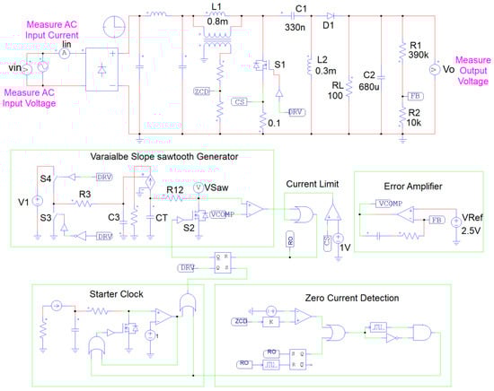 - Wang, Y.; Zhang, Y.; Mo, Q.; Chen, M.; Qian, Z. An improved control strategy based on multiplier for CRM Flyback PFC to reduce line current peak distortion. In Proceedings of the 2010 IEEE Energy Conversion Congress and Exposition, Atlanta, GA, USA, 12–16 September 2010; pp. 901–905. [Google Scholar]