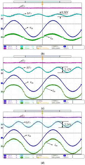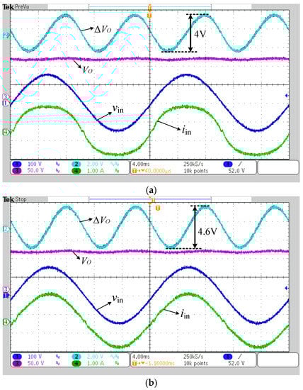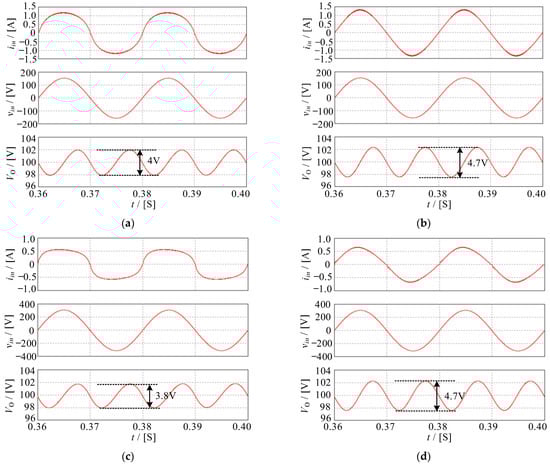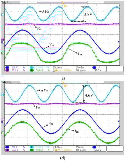 The instantaneous power imbalance between the output and input of the PFC converter leads to a double-line frequency ripple of output voltage [34]. By analyzing the circuit of Figure 2, the double line frequency output voltage ripple is produced by the second-order harmonic current of iD1 flowing into output capacitor C2.
