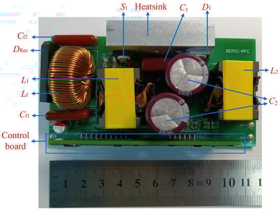 In recent years, the demands for power supplies with power factor correction (PFC) converters have increased to realize low input current harmonic and high-power factor (PF) to conform to the necessary harmonic limits standards, e.g., IEEE STD 519 and IEC61000-3-2 [1,2,3,4,5]. To realize PFC, many different PFC circuit topologies, including Buck, Boost, Cuk, Buck-Boost etc., have been researched to satisfy different application condition requirements [6,7,8,9,10,11,12]. The input current ripple of the Boost converter is small because of the series connection of the inductor at the input side, so the Boost converter can realize high PF and has been widely used [8,9,10]. However, Boost PFC topology cannot achieve the output voltage, which is lower than the magnitude value of AC input voltage. It is hard to handle high input inrush current and short output protection during starting up. To meet applications where the output voltage is lower than the input voltage Buck PFC converter is researched in [6,7], it is easy to achieve short output protection, but it is hard to realize high PF because there is a large input current dead time when the output voltage is higher than the instantaneous input voltage of each AC line period. To achieve a voltage between the maximum and minimum input voltage range, Buck-Boost and Cuk PFC converters are investigated in [11,12,13,14], but applications of Buck-Boost and Cuk PFC are limited since the output voltage is negative. Similar to the Boost converter, the current ripple at the input terminal of a single-ended primary inductor converter (SEPIC) is small because the converter has an inductor connected in series at the input terminal, so the SEPIC converter is suitable to achieve PFC [15,16]. Compared to Boost, Buck, Buck-boost, and Cuk PFC converters, SEPIC PFC converter can easily achieve positive polarity output voltage, short output protection, more comprehensive output voltage range [16,17,18]. Therefore, SEPIC PFC converter has gained more and more applications such as light emitting diode driving circuits, onboard chargers for plug-in electric vehicles, brushless DC motor drives, air-craft power supplies etc. [19,20,21,22,23,24,25,26,27,28,29,30,31].