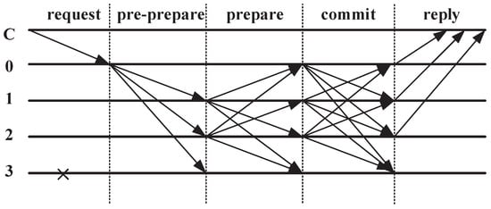 C is the client, 0, 1, 2 is the server, and 3 is the closed server. The specific steps of consensus algorithm are as follows: