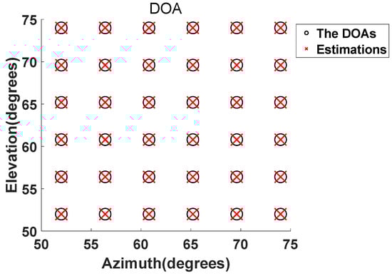 where and are the estimations of elevation angle and azimuth angle in the jth experiment for the kth signal and is the number of Monte Carlo trials.