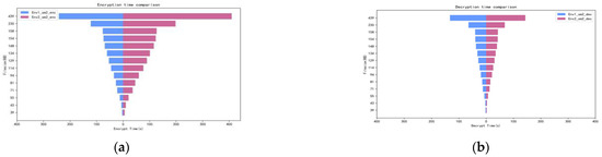 Time consumption of encryption (a) and decryption (b) of different experimental samples using SM2.