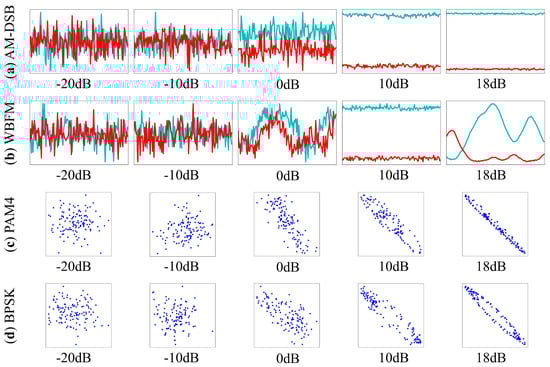 - Abdelmutalab, A.; Assaleh, K.; El-Tarhuni, M. Automatic modulation classification based on high order cumulants and hierarchical polynomial classifiers. Phys. Commun. 2016, 21, 10–18. [Google Scholar] [CrossRef]