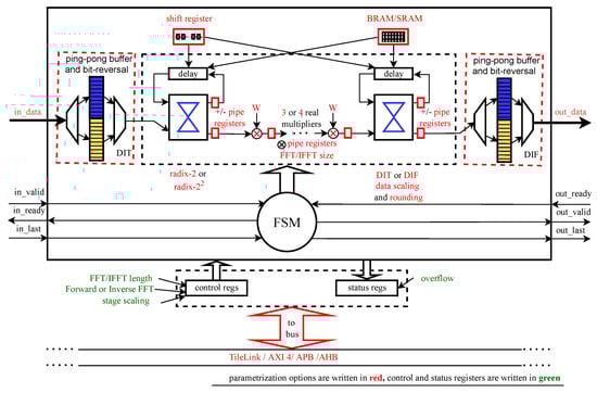 - Milovanović, V.M.; Petrović, M.L. A Highly Parametrizable Chisel HCL Generator of Single-Path Delay Feedback FFT Processors. In Proceedings of the 31st IEEE International Conference on Microelectronics (MIEL 2019), Nis, Serbia, 16–18 September 2019; pp. 247–250. [Google Scholar]