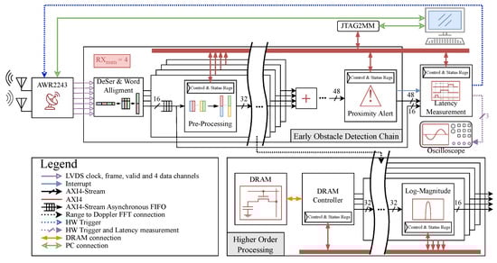 Moreover, latency is a critical factor in the early obstacle detection chain; thus, a method for reducing the system latency was proposed. By flushing data during the time between two consecutive radar data blocks, the system latency can be significantly reduced. The following subsections provide an overview of the used blocks as well as additional information on data flushing.