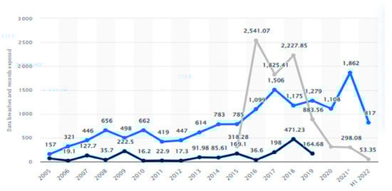 Data Breaches in Past Years on Statista [1]. Reprinted/adapted with permission from Ref. [1]. Copyright 2022, Statista. * shows forecasts.