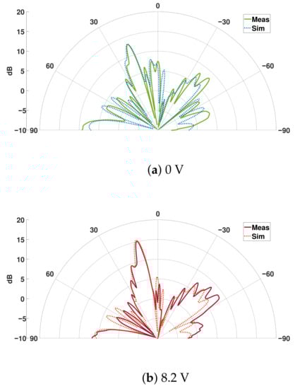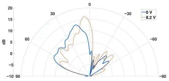 - Martini, E.; Pavone, S.; Albani, M.; Maci, S.; Martorelli, V.; Giodanengo, G.; Ferraro, A.; Beccherelli, R.; Toso, G.; Vecchi, G. Reconfigurable Antenna Based on Liquid Crystals for Continuous Beam Scanning with a Single Control. In Proceedings of the 2019 IEEE International Symposium on Antennas and Propagation and USNC-URSI Radio Science Meeting, Atlanta, GA, USA, 7–12 July 2019; pp. 449–450. [Google Scholar] [CrossRef]