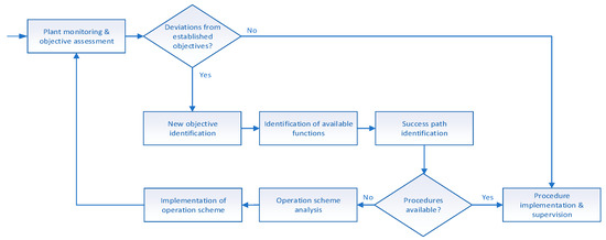In the previous study, the author proposed the Operating Procedures Supervision System (OPSS) to implement operator supervision under the guidance of operating procedures [25]. Operating procedures are a group of actions with a time sequence, according to which the NPP operators can establish or maintain the functions of systems and equipment to achieve specific operational objectives. Each operating procedure is not the only means to achieve an operational objective, but an operation strategy that has been verified and proved to be safe, reliable, easy to implement, and can achieve the operation objective under an expected condition. However, under some special conditions, the operators may be in a situation where there is no operating procedure available, or all operating procedures are not fully applicable. In the absence of operating procedure guidance, the probability of operator error will increase. After the Fukushima nuclear accident, the Nuclear Energy Institute (NEI) put forward the FLEX strategy (Diverse and Flexible Coping Strategies) [26], which aims to establish the ability to prevent fuel and spent fuel from damage and maintain the containment function for a long time by using fixed equipment, on-site mobile equipment and preset off-site resources.