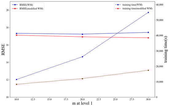 A comparison of the training time and root mean square error (RMSE) for the two Wang–Mendel methods, learned under different initial affiliation functions of the spatial-temporal module, is shown in Figure 12. It is apparent that the training time for the improved Wang–Mendel method is significantly reduced while maintaining accuracy comparable to that of the original Wang–Mendel method.