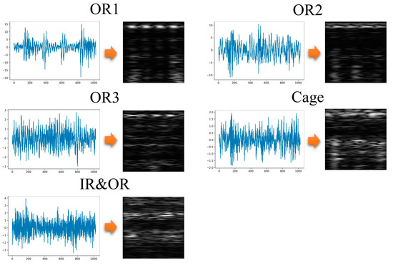 Time-domain vibration signals for CWRU data and the corresponding time-frequency images obtained by conversion.