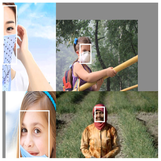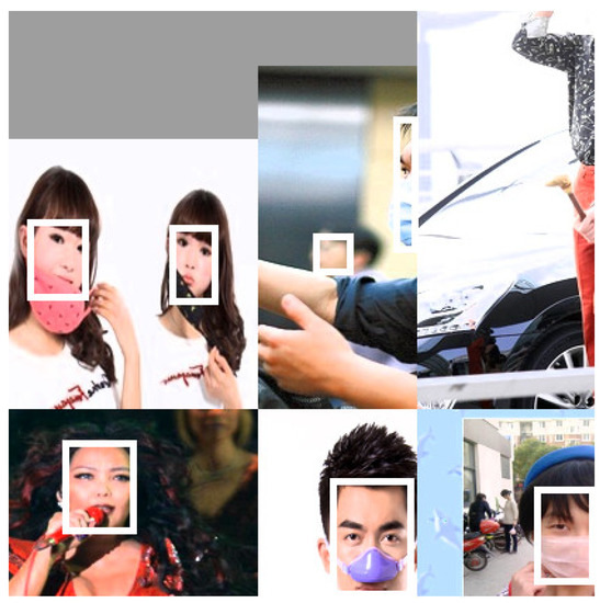 To further enrich the image background, improve model robustness and enhance training efficiency, we propose an improved mosaic data enhancement method in this paper. This method synthesizes the four original images into six images that are then sent to the model for training. Given that the images generated by the mosaic method differ from the real distribution of natural images, we set a 50% probability of using mosaic data enhancement in each step and only used it in the first 70% of the epochs. This approach enriched the image background and ensured a real distribution of images while improving model robustness. Figure 7 displays a picture after improved mosaic data enhancement.