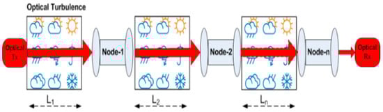 The optical relaying networks in FSO composed of nodes at the spacing of Li.