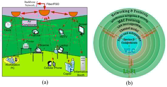 - Feng, L.; Hu, R.Q.; Wang, J.; Xu, P.; Qian, Y. Applying VLC in 5G networks: Architectures and key technologies. IEEE Netw. 2016, 30, 77–83. [Google Scholar] [CrossRef]