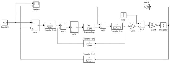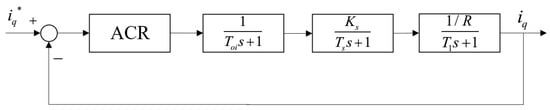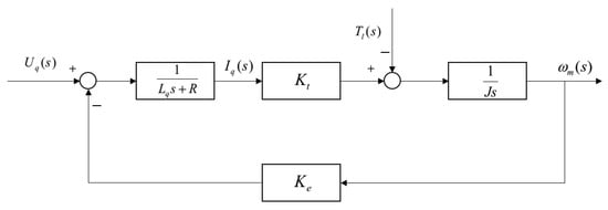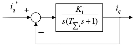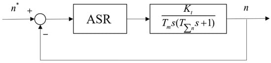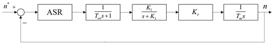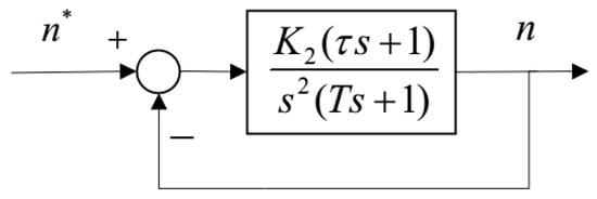 Substituting the equivalent link of the current loop obtained by Equation (14) into the speed loop, the structure diagram of the speed loop as shown in Figure 6 can be obtained.