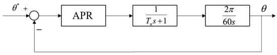 The equivalent link of the speed loop obtained by Equation (17) is substituted into the position loop, and because the performance requirement of the position loop is no overshoot, P regulator is selected. The position loop structure diagram is used, as shown in Figure 9.