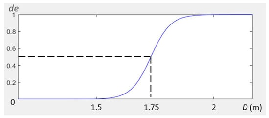 where is the weighting factor, with D as the distance between the customer and robot and as a constant, which is selected to be large enough to make approximate 1 when D > 2 m and 0 when D < 1.5 m, as shown in Figure 6.