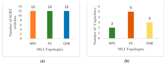 Multilevel inverters come in a variety of topologies and control approaches. In general, multilevel inverters are classified into two types: traditional and reduced switch types. Figure 3a,b show three standard topologies for multilevel inverters and their developments [8,9,10,11,12].
