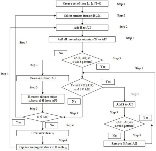 We adopt the scheme proposed in [14] to generate the artificial frequent itemsets and artificial infrequent itemsets that satisfy the requirement of an s-valid pattern. The execution process of artificial itemset generation can be seen in Figure 2 and the details are as follows.