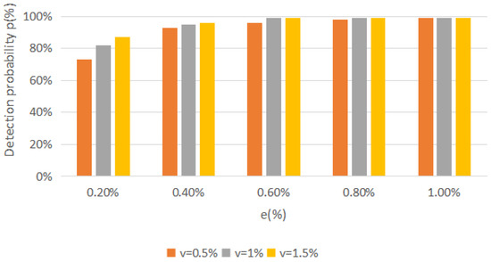 As shown in Figure 4, the verification accuracy increases along with the increase in the number of dishonest behaviors in the cloud and the proportion of artificial itemsets. As e represents the proportion of itemsets affected by the CSP’s dishonest behaviors and v represents the proportion of artificial itemsets in the mining results which reaches , the data owner can capture dishonest behaviors from the CSP with a probability close to .