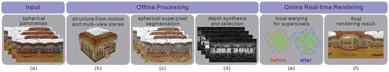- Kawai, N.; Audras, C.; Tabata, S.; Matsubara, T. Panorama Image Interpolation for Real-time Walkthrough. In Proceedings of the ACM SIGGRAPH Posters, Anaheim, CA, USA, 24–28 July 2016; pp. 33:1–33:2. [Google Scholar]