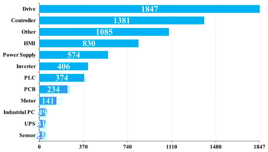 According to the database of successfully remanufactured equipment over several years, as depicted in Figure 14, it can be seen that more than 6500 units were successfully remanufactured, ranging from motors to electronic controllers, including VFDs, PLCs, HMIs, and PCBs. As a result, establishing this facility has decreased the harmful effects of industrial activities on the environment in the region and provided cost-effective solutions for businesses looking to replace their aging equipment.