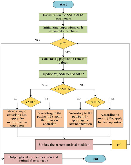 The flowchart of the SSCAAOA algorithm is shown in Figure 4: