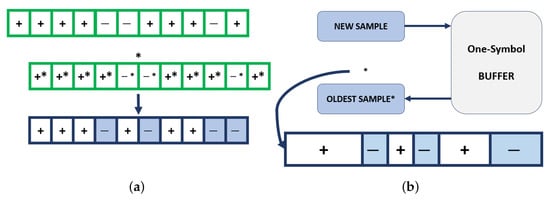 When starting to encode the input bits, the shift registers of the 8-state constituent encoders shall initially have all zeros values. The turbo encoder’s output is , , , [10]. The input bits of the turbo encoder are denoted by ..., while the output bits from the internal interleaver are denoted by ..., which are the input to the second 8-state constituent encoder. The relationship between them is as follows [10,11]: