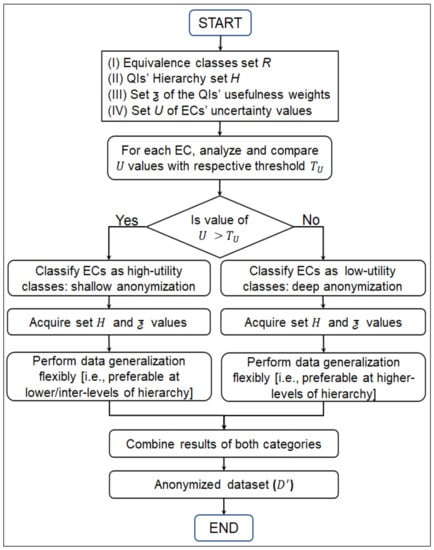 - Li, J.; Liu, J.; Baig, M.; Wong, R.C.W. Information based data anonymization for classification utility. Data Knowl. Eng. 2011, 70, 1030–1045. [Google Scholar] [CrossRef]