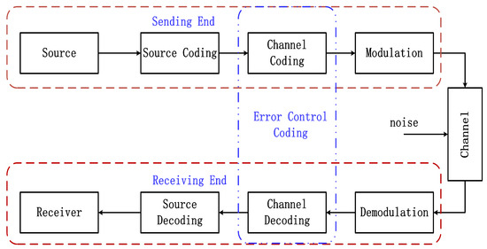 The typical digital system communication block diagram is shown in Figure 1. The binary information sequence after the source coding is converted into code word information by means of channel coding. The code words are then converted into a waveform signal that can be transmitted on the channel after modulation. During the transmission, the signal is interfered with by various noises, so that the waveform information received by the demodulator may be wrong. When the information from the channel is transmitted to the receiving end, it will firstly be demodulated, and then enter the channel decoding module.