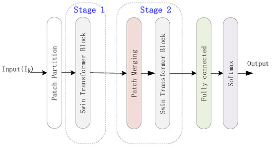 The function of the patch merging layer is similar to the max-pooling layer in CNN, which is used to expand the receptive field. The vector size of stage 1’s output is the the same as its input with the size of . Then, the outputs are resized into the size of by taking one of every three pieces of data from the output of stage 1. After a normalization in each row and a fully connected layer, the output becomes . The Swin Transformer block in stage 2 is similar to stage 1. The difference is only the dimension, which is 10 in stage 2. Finally, the outputs of stage 2 of the size are sent to the fully connected layer and processed using the softmax function for classification.