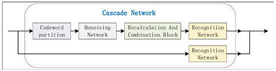 Furthermore, channel condition is the key factor in coding blind recognition. Almost all of the traditional coding blind recognition methods of LDPC codes adequately utilize the channel condition. On the contrary, most existing recognition methods based on deep learning pay little attention to the channel condition, which made these deep learning methods identify accurately at high SNR but fare badly when the channel condition is not good enough. Channel noise is similar to image noise in some areas. The deep learning method for two-dimensional image denoising has been widely studied in the field of computer vision [18], and has made considerable progress over the last couple of years [19,20]. In addition to this denoising, the design aims for two-dimensional data. Denoising networks are also widely used in other fields. In the area of decoding, a novel receiver architecture [21] concatenates a belief propagation (BP) decoder for decoding with a convolution neural network (CNN) for denoising. The iteration between BP decoding and CNN will gradually improve the SNR, and achieve better decoding performance. In [22], the double-CNN denoiser is designed to surpass the noise by estimating the channel state information (CSI) under the Rayleigh fading channel. However, these two methods can hardly be applied in practical terms due to the constraint of the information bit length [23], which can cause the dimension explosion of the neural network.