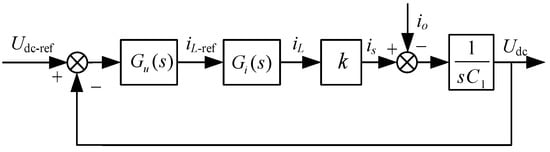 where Gu(s) is the transfer function of the voltage loop PI controller, Gi(s) is the transfer function of the current loop CCS-PCC controller (the transfer function of the CCS-PCC controller is one in ideal condition), and k = Ub/Udc is the conversion gain, which is derived from Equation (20).