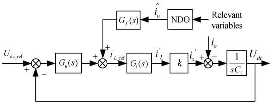 Compared with (21), the DC bus voltage based on the NDO-feedforward method is made up of three parts in (22). The equivalent load current observation value can further reduce the influence of the disturbance term on the DC bus voltage. Assuming that we can make (Gf(s) = Udc/Ub) to eliminate the influence of current disturbance on DC bus voltage. In the dynamic process of asymptotic convergence of (), (22) can be described as follows: