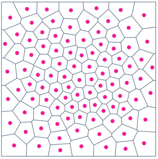 Figure 5, it is a continuous polygon composed of a set of vertical bisectors connected by adjacent points. In the Voronoi map, each polygon has a generator, and the distance from any point in each polygon to the generator of the polygon is shorter than the distance from other generators. The distance from the point on the polygon boundary to the generator that generates the boundary is equal.