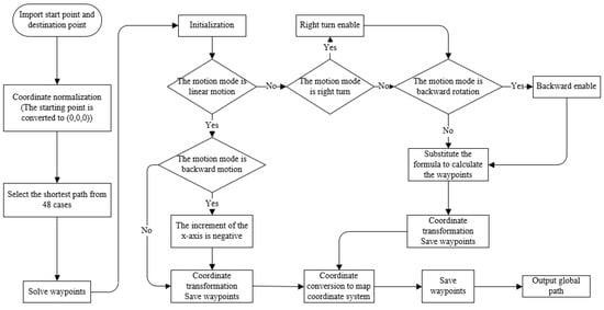 In contrast, the holonomic heuristic cost with obstacles only considers the obstacle information and ignores the impact of vehicle kinematics constraints. At each node, the Dijkstra algorithm is used to obtain the nearest distance to the target point as the heuristic cost . The purpose of this action is to use the Dijkstra algorithm to obtain the characteristics of the shortest path from the expansion node to the target point in the maze environment, to prevent the wrong direction of Hybrid A* expansion during the expansion process, resulting in unnecessary computational waste.