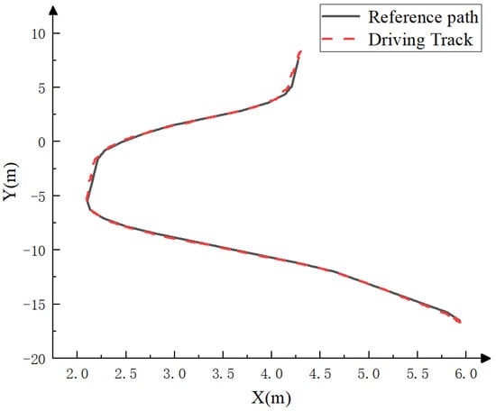 , the vehicle turns right. Through the precise control of the tracking speed of the left and right tracks, the motion control of the tracked construction machinery is realized so that its tracking track and reference path can be well fitted.