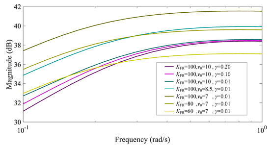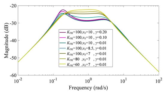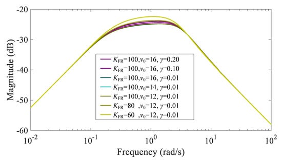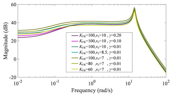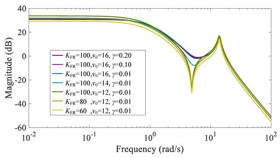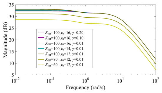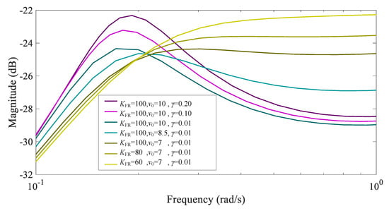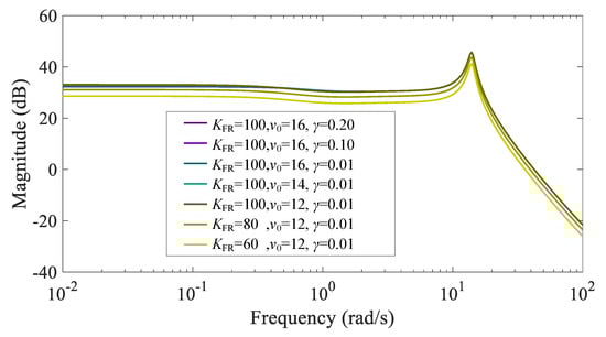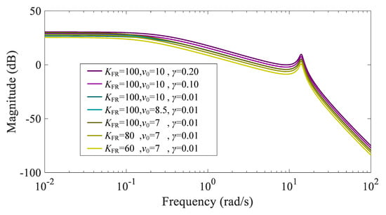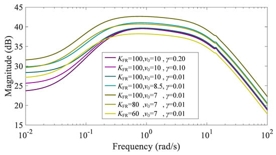 Bode diagram of under different parameters below rated wind speed.