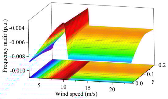 Frequency nadir under different wind speeds and .
