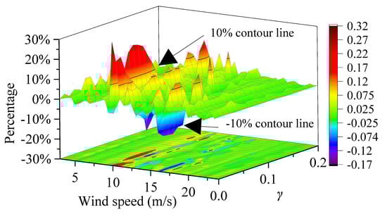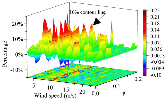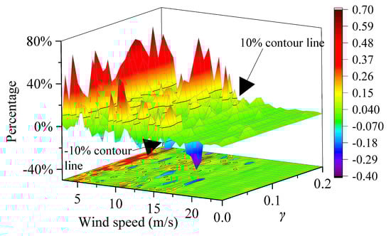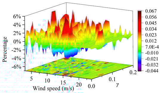 Figure 26 shows the percentage increase in fatigue loads of the tower fore-aft bending moment under different wind speeds and when is 250 p.u. The results indicate that the fatigue loads may either increase or decrease within a range of 30%.
