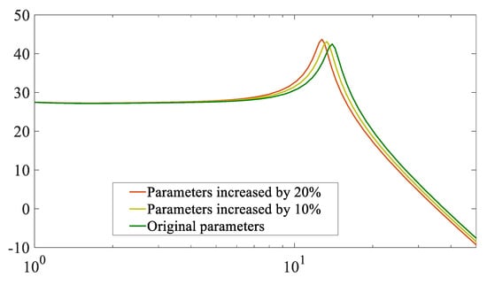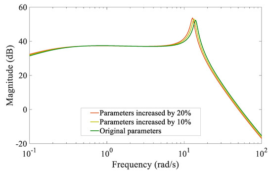 Bode diagram of under different parameters above rated wind speed.