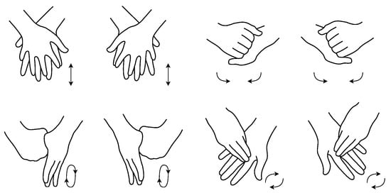 - WHO’s Hand Washing Guidelines. Available online: https://www.who.int/multi-media/details/how-to-handwash-and-handrub (accessed on 15 February 2023).
