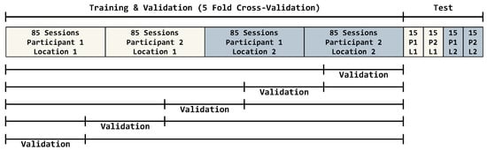 All training and testing were performed using Tensorflow-Keras [38] in Python. Four different systems were used for training. System specifications and average training times can be seen in Table 2 and Table 3. In one of the systems, Plaid-ML framework was used [39]. A 5-Fold Cross Validation method was used for all the models. Training/Validation/Test split of the dataset can be seen in Figure 14. From all datasets, 60 sessions (files for PGM) were split for testing. In total, 340 sessions were used for training and validation. In all datasets, a total of 26 sessions for various gestures which were recorded in location 1 had unwanted issues (such as not being recorded accidentally). They were replaced by extra recordings in location 2. All networks were built with Adam optimizer [40] with a learning rate of 0.001. Batch size for all networks were 32. Figure 15 and Figure 16 show LSTM model architectures used in this study.