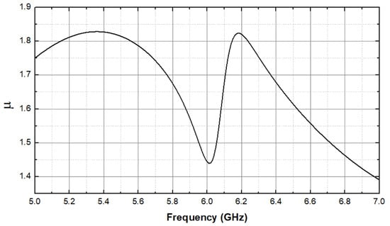 The stability factor of the proposed VGLNA is shown in Figure 5, which is higher than 1 within a tested wide bandwidth (5–7 GHz), indicating stable operation at the target frequency.