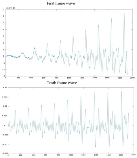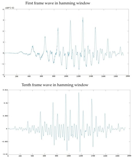 We chose the frame length as 40 ms with an overlap rate of 6.3% and we obtained 10 frames from each data sample for analysis. Figure 7 shows the difference in signal between the first frame and tenth frame.