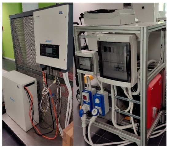The measurement devices employed in this study are categorized into two groups: (1) EV charger’s measurement devices supplied by the manufacturer, whose findings are delivered to the charger’s EMS in order to perform V2X services; and (2) measurement devices used for additional testing and research in Edison’s laboratory. One of the first sets of measurement devices is put at the connection point to the grid in order to measure the house’s total power consumption, and the second one is positioned after the PV inverter to measure the PV power production at the time. Through an RS-485 cable and Modbus protocol, these meters are directly connected to the bidirectional charger. The second set of measuring devices is placed in key locations throughout the testing facility to measure and gather data for additional exploration and analysis.